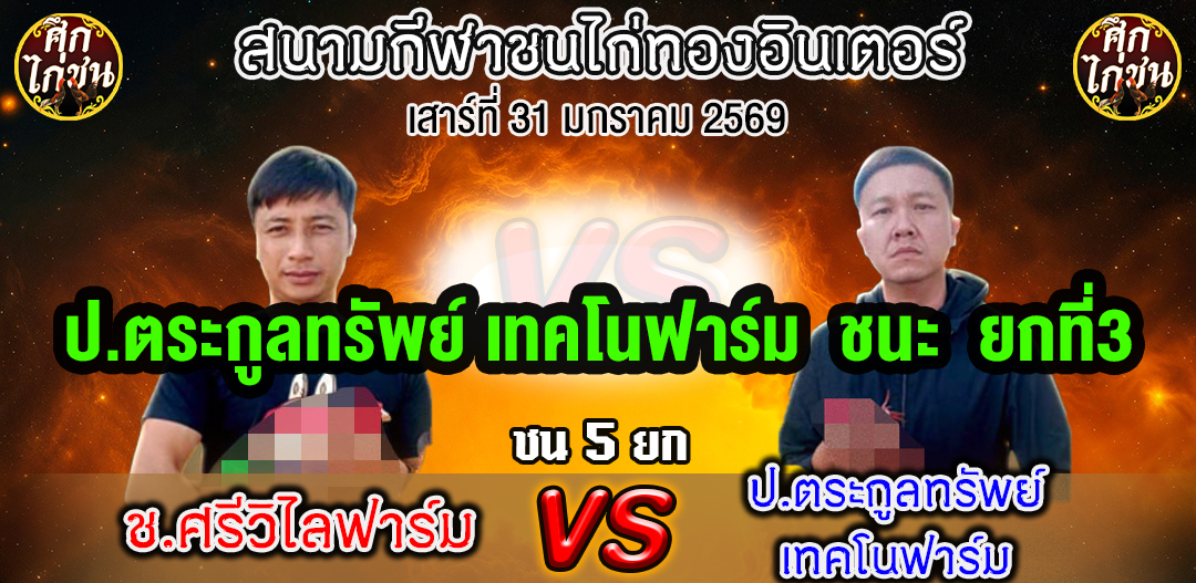 (ช.ศรีวิไลฟาร์ม 🆚 ป.ตระกูลทรัพย์เทคโนฟาร์ม) สนามไก่ทองอินเตอร์ ชิง2.2M เสาร์ที่ 31 มกราคม 2569