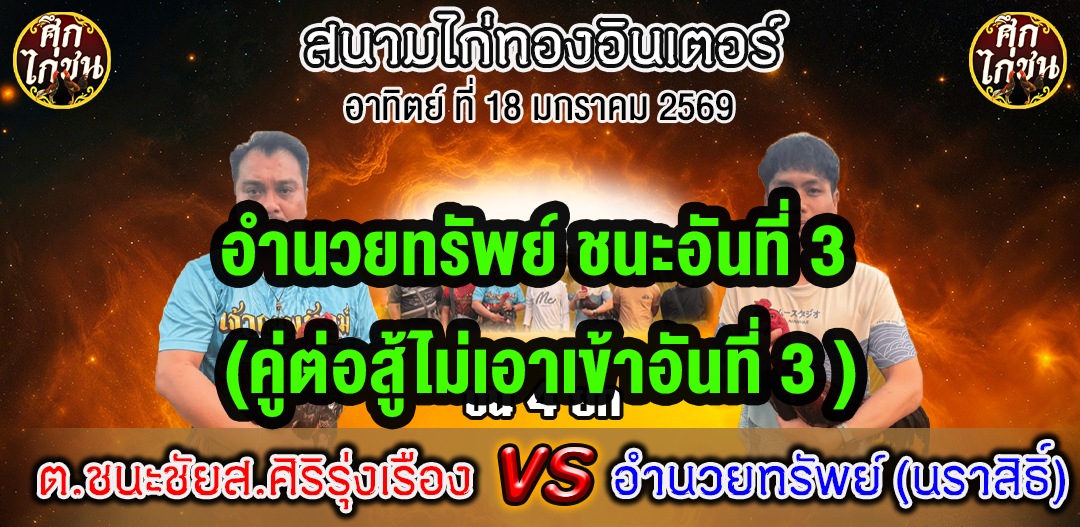 (ต.ชนะชัยส.ศิริรุ่งเรือง vs อำนวยทรัพย์ (นราสิธิ์) อำนวยทรัพย์ ชนะอันที่ 3 (คู่ต่อสู้ไม่เอาเข้าอันที่ 3 )