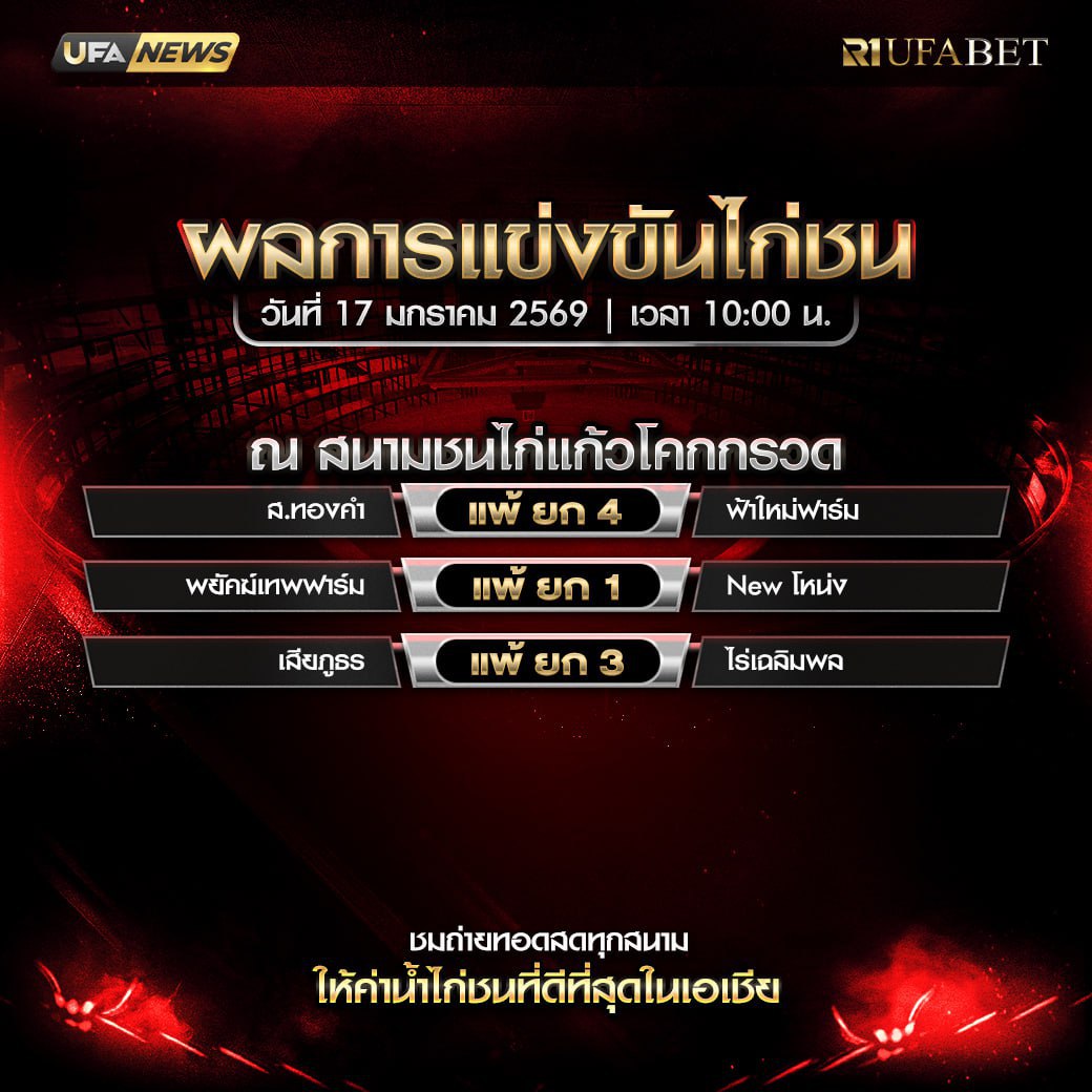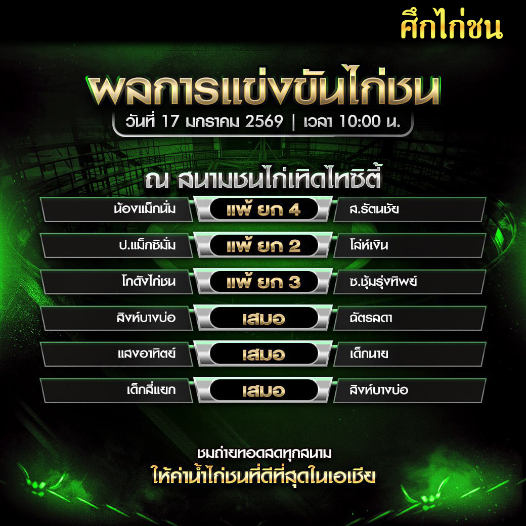 สรุปผล สนามชนไก่เทิดไทซิตี้ 17 มกราคม 2569