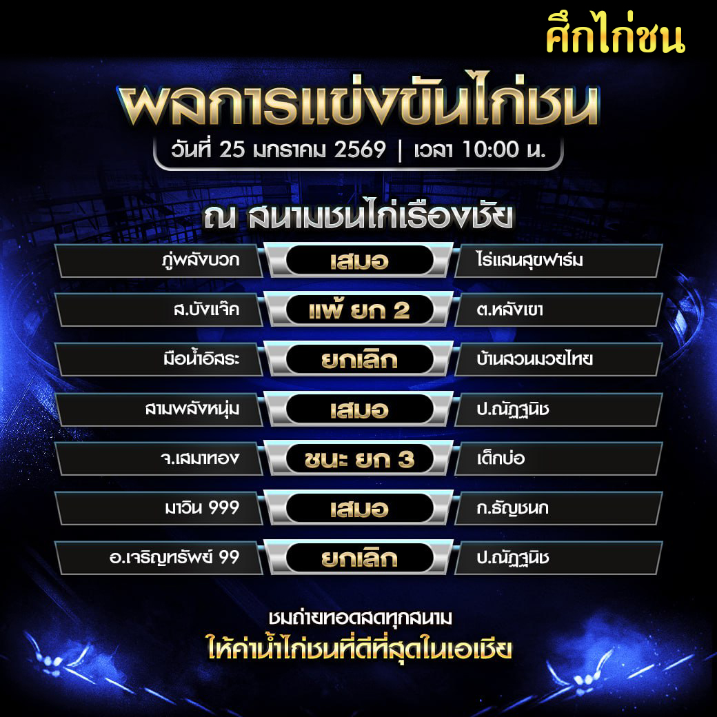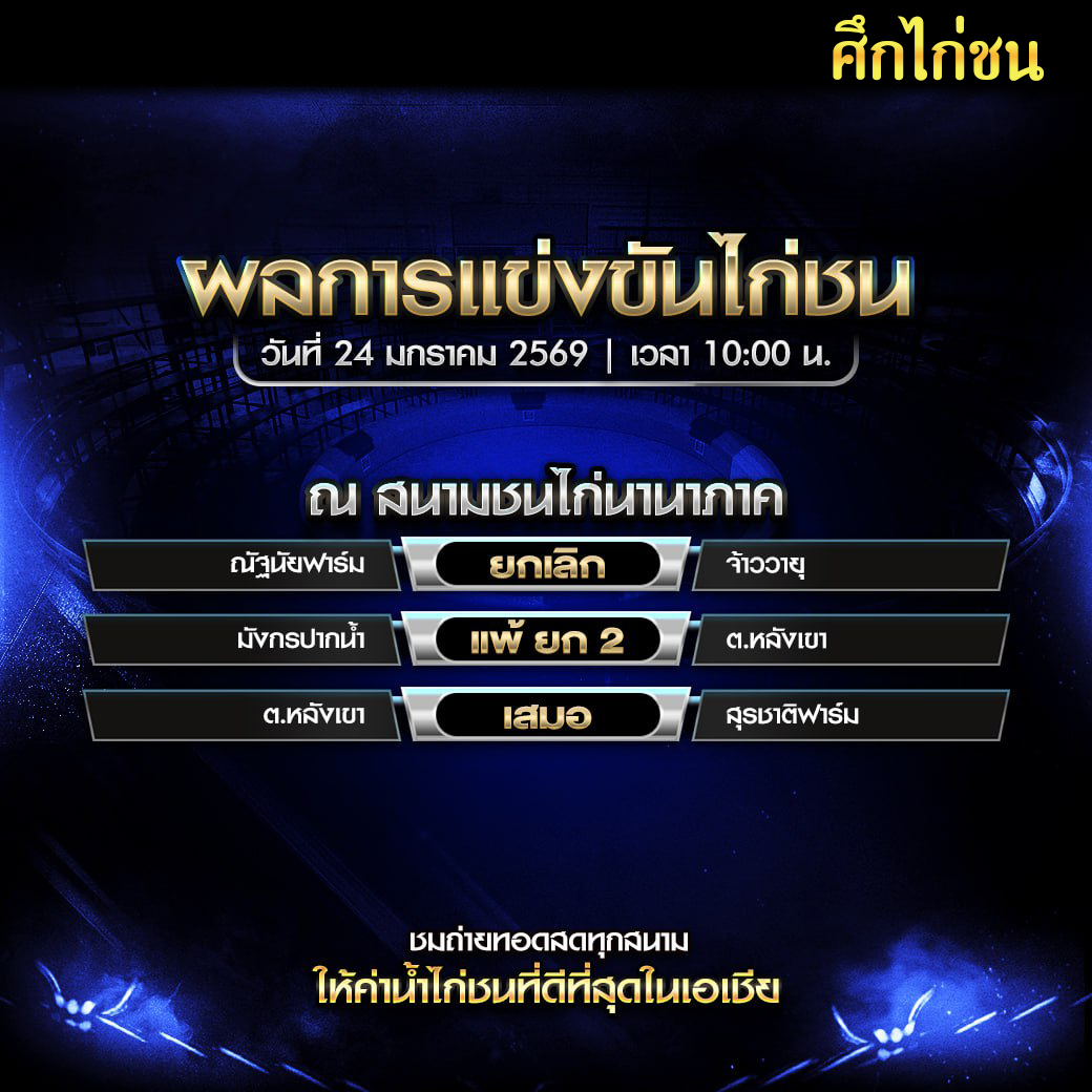 สรุปผล สนามชนไก่นานาภาค วันที่ 24 มกราคม 2569