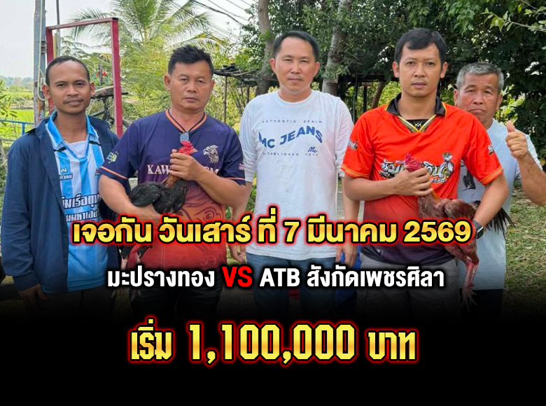 (มะปรางทอง🆚ATB สังกัดเพชรศิลา) สนามชนไก่ทองอินเตอย์ เริ่ม1.1M เจอกัน วันเสาร์ ที่ 7 มีนาคม 2569
