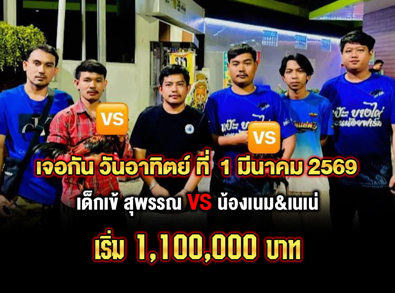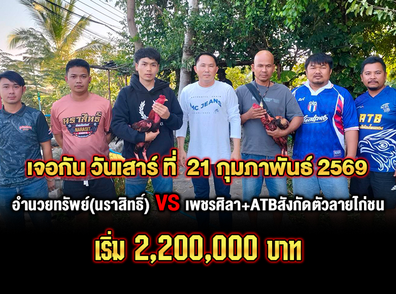 (อำนวยทรัพย์(นราสิทธิ์) 🆚 เพชรศิลา+ATBสังกัดตัวลายไก่ชน) สนามไก่ทองอินเตอร์ 2.2M. เจอกัน วันเสาร์ ที่ 21 กุมภาพันธ์ 2569